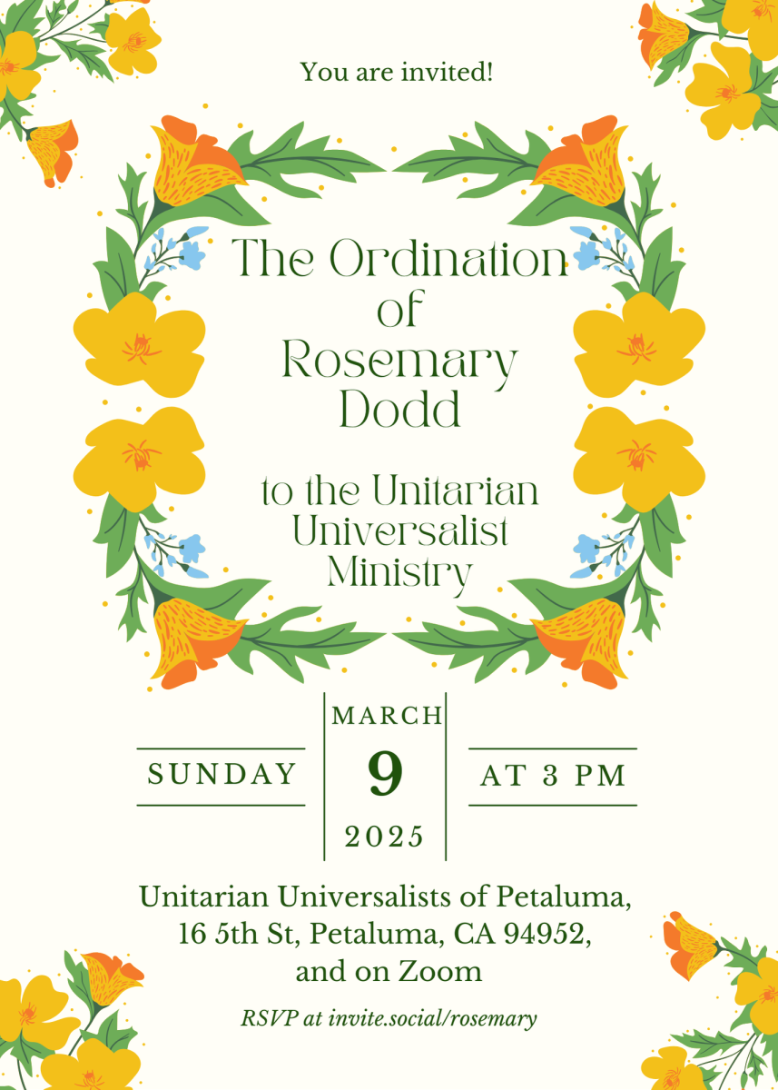 Please join the Unitarian Universalists of Petaluma for this celebration including reflections from UU clergy, music by Ashley Mulcaire and David Dodd, and a reception following the service. RSVP at https://invite.social/rosemary.